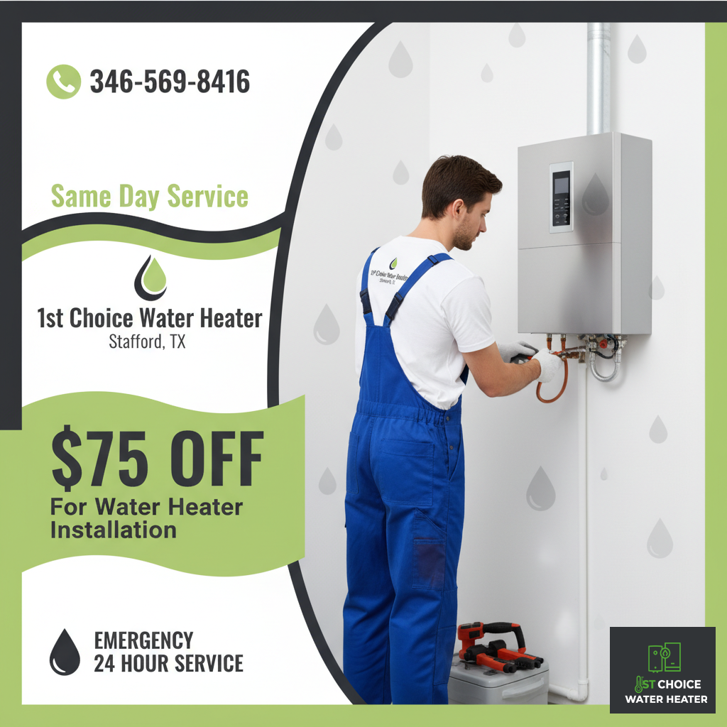 Across Stafford, habitations searching for consistent warming lean on 1st Choice Water Heater Stafford TX, a firm whose craftsmanship blends Texas grit with refined accuracy. Our fitting work unfolds like a practiced rhythm, methodical, seamless and confidently handled by crews who understand nearby residences and their changing demands.
